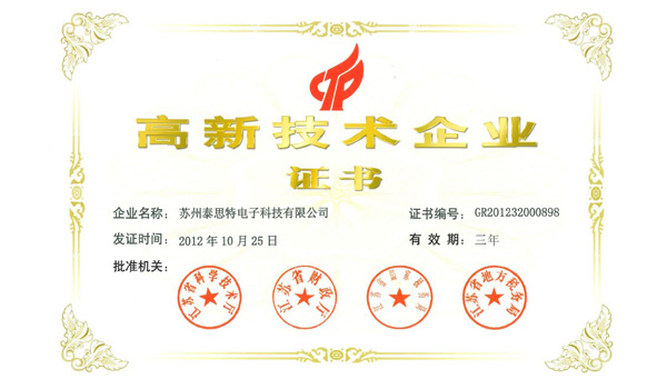 經(jīng)過江蘇省高新技術(shù)企業(yè)認(rèn)定部門及專家的嚴(yán)格審查,蘇州泰思特電子科技有限公司被認(rèn)定為江蘇省高新技術(shù)企業(yè)。