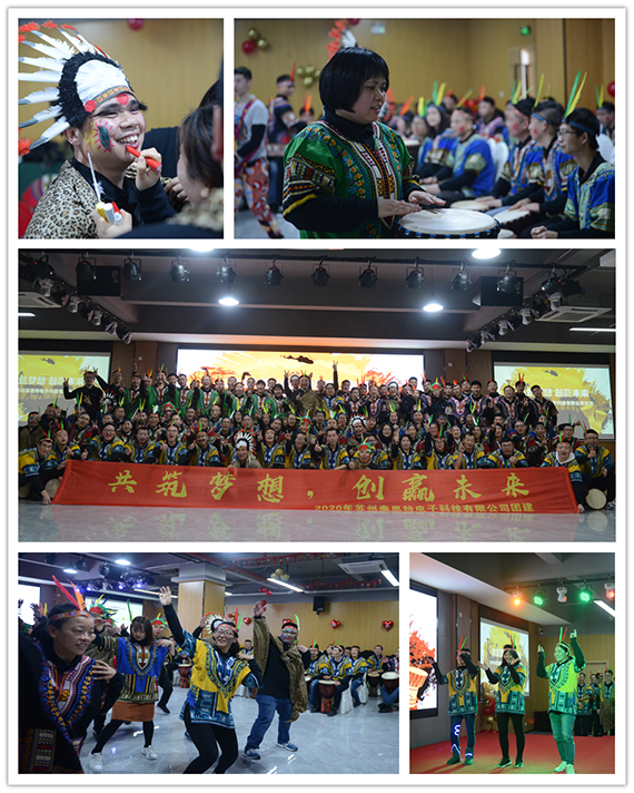 泰思特全體員工組建成五個部落,并分別選定酋長、王妃、部落圖騰。在油彩、獸皮、草裙、印第安頭飾等豐富的部落元素的登場讓團(tuán)隊(duì)迅速進(jìn)入了狀態(tài),全力投入到DIY的創(chuàng)意裝扮中。隨后各部落即興創(chuàng)作舞臺劇,經(jīng)過各部落集思廣益討論、策劃,結(jié)合非洲鼓鼓點(diǎn)的魅力完美呈現(xiàn),笑果十足。