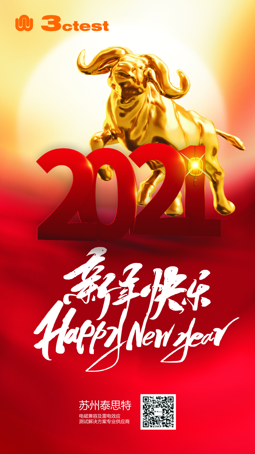 泰思特恭祝大家新春快樂,牛年大吉!