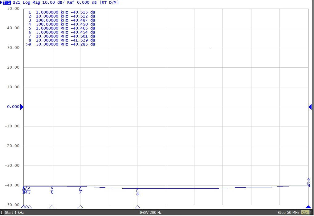 負(fù)載阻抗為1MΩ時(shí):轉(zhuǎn)移阻抗(dB)=s21+34dB+6dB;