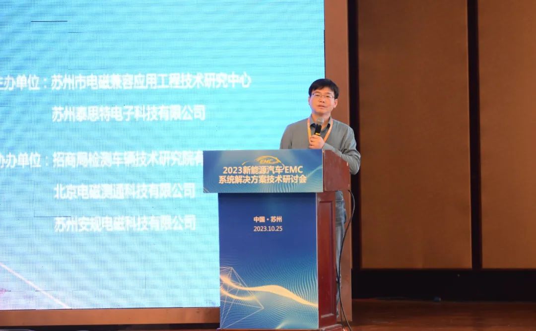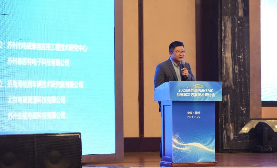 2023年10月24日-25日,由蘇州電磁兼容應(yīng)用工程技術(shù)研究中心、蘇州泰思特電子科技有限公司主辦,招商局檢測(cè)車輛技術(shù)研究院有限公司、北京電磁測(cè)通科技有限公司、蘇州安規(guī)電磁科技有限公司協(xié)辦的“2023新能源汽車EMC系統(tǒng)解決方案技術(shù)研討會(huì)”在蘇州王府金科大酒店成功召開并順利落下帷幕。此次研討會(huì),吸引了全國各地各汽車主機(jī)廠、汽車零部件企業(yè)以及新能源相關(guān)行業(yè)的140余名參會(huì)人員共同交流探討汽車電磁兼容技術(shù)相關(guān)的技術(shù)研究。