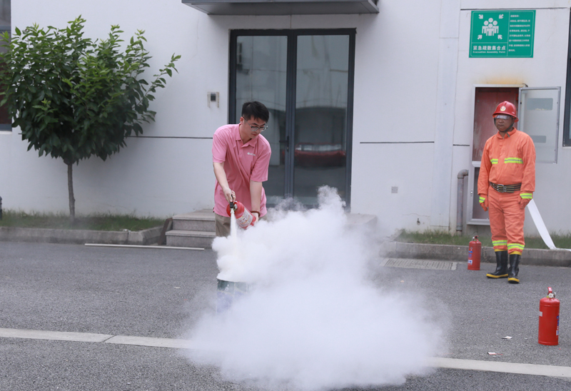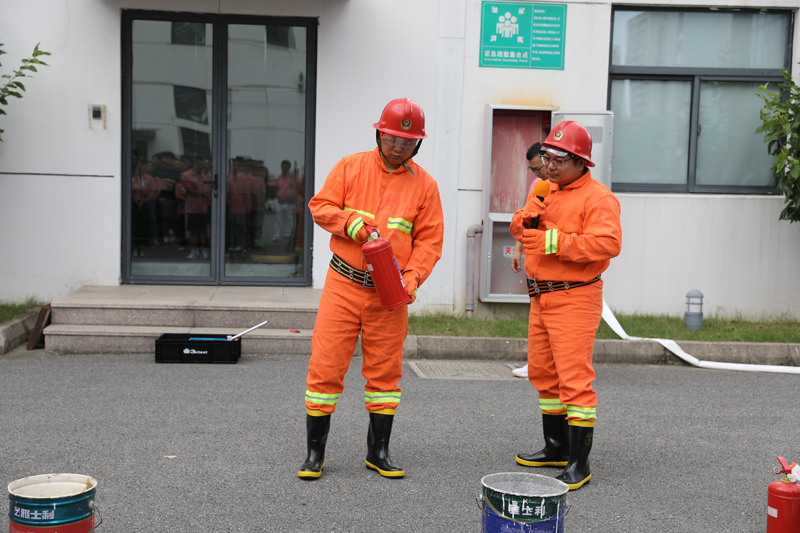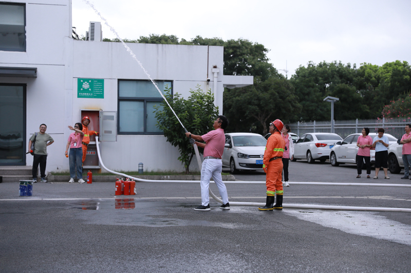接著,我司安全員、安全生產(chǎn)標(biāo)準(zhǔn)化老師詳細(xì)講解了滅火器及消防水帶的使用方法和注意事項,并指導(dǎo)員工們親自上手使用滅火器、消防水帶滅火。
