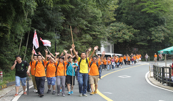 “ 做一流產(chǎn)品,創(chuàng)世界品牌”,是我們這次黃山登攀之旅的主題口號,全隊共80人,分成雄獅隊、海豹隊、老鷹隊、野狼隊四個編隊 。