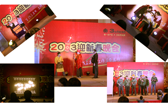 “心有多大,舞臺就有多大”,創(chuàng)意無限,驚喜無限,2013年迎新春晚會再次彰顯了泰思特人所特有的創(chuàng)新、勇氣、睿智、激情,歷時三個半小時的晚會就是一個集視覺、聽覺一體的狂歡盛宴,女聲獨唱《好運來》《為了誰》,舞蹈《古典辣妹》、《隱形的翅膀》、《肚皮舞》、《健康操水果拳》,小品《幸?!贰ⅰ兜乩椎墓适隆?、《大話西游》、《新聞聯(lián)播》、《尋味年代》,綜合類《光與影》,快板《唱響八周年-明天無限好》、小提琴獨奏《茉莉花 》----一個又一個精心策劃的節(jié)目將晚會推向了一個又一個高潮,整個晚會沉浸在一片歡聲笑語中,最終綜合類節(jié)目《光與影》獲得“最佳表演獎”, 舞蹈《健康操水果拳》獲得“最具活力獎”,小品《尋味年代》獲得“最佳舞美獎”, 小品《新聞聯(lián)播》獲得“最佳創(chuàng)新獎”。