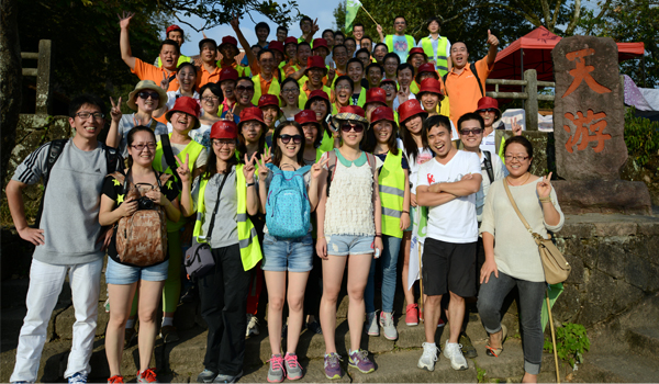 下午的行程是游覽武夷第一勝地-天游峰。登上景區(qū)托馬斯觀光車,沿途領(lǐng)略青山綠水、藍(lán)天白云的勝境、呼吸著最原始生態(tài)的空氣,感受來自大自然的賜予,不知不覺來到景點(diǎn)。蜿蜒的石階小路一眼望不到頭,陡峭的磐石,崎嶇狹窄石階及其險(xiǎn)峻。泰思特的小伙伴們身上綠色馬甲在蜿蜒的臺階上組成了一條綠色的長龍,各小分隊(duì)的旗子隨風(fēng)舞動(dòng),成了景區(qū)另一道獨(dú)特的風(fēng)景,歡笑聲、尖叫聲、加油聲在山間回蕩。經(jīng)過大家堅(jiān)持不懈的努力,終于把天游峰踩在腳下。站在山頂,極目遠(yuǎn)眺,武夷山美景盡收眼底。又是興奮、又是收獲。
