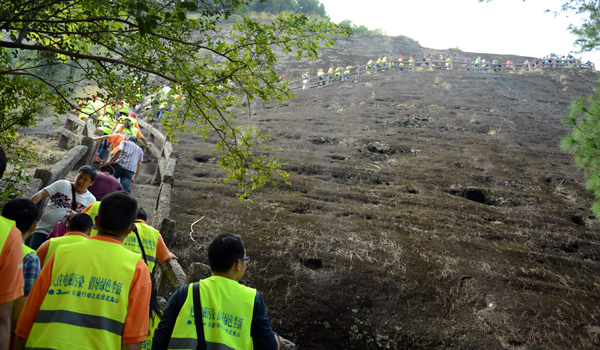 最后一天,我們來到四壁陡峭的虎嘯巖, “登山不觀景,觀景不登山”在虎嘯巖的攀爬過程中得到了最好的驗(yàn)證,一條人工開鑿的小徑,一邊陡峭的山崖,一邊是幽深的山谷。腳下臺階長不過半米,寬不過一個(gè)腳掌。一路延伸,幾乎沒有一個(gè)平坦的臺階。借著昨天登山的勁頭,大家一鼓作氣登上虎嘯巖觀景臺,欣賞著四周環(huán)繞的美景,不得不感嘆大自然的鬼斧神工。