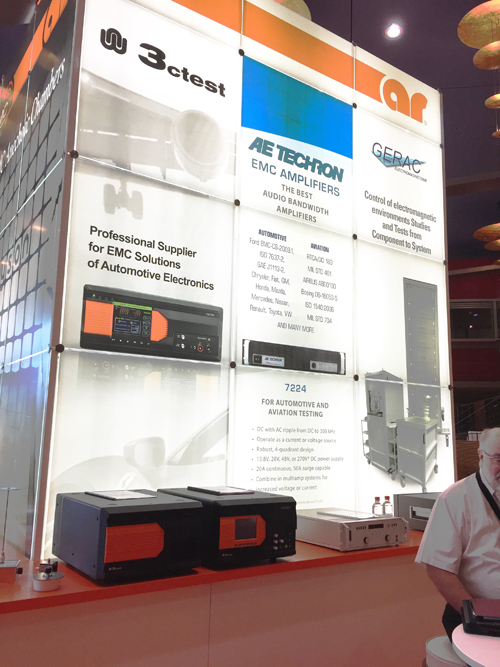 AR公司是全球規(guī)模最大的功率放大器廠商,目前AR歐洲公司已經(jīng)成為蘇州泰思特產(chǎn)品在歐洲銷售的獨家代理商。本次展會上,AR美國總公司作為本次會議的金牌贊助商一同展出了蘇州泰思特第三代汽車EMC測試系統(tǒng),產(chǎn)品高端大氣的形象與AR展臺相應(yīng),吸引了眾多參展商及觀展人士駐足,對來自中國的EMC設(shè)備表現(xiàn)出濃厚的興趣和贊嘆。