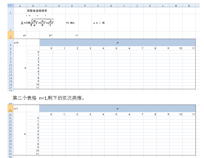 三個(gè)變量決定了有太多種的模式,我用excel表格列了11階次的諧振頻率計(jì)算公式。