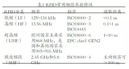 在應用方面,低頻和高頻的電子標簽,讀取距離較短、數(shù)據(jù)量少,因此適合用于近距離的識別。超高頻系統(tǒng)由于具有不同的電磁感應方式,讀寫器和標簽的讀取距離可>10 m,數(shù)據(jù)速率可達640 kbpsRIFD常用頻段參數(shù)特性,見表1。