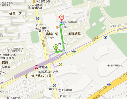 【交通路線】:乘坐地鐵10號線(新江灣城-航中路/虹橋火車站)到達水城路站1號出口,按地圖方向步行約180米到達終點。