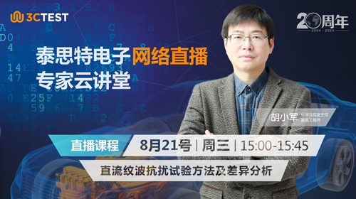 直播時間:8月21號(周三) 15:00-15:45 課程摘要:直流紋波的產生及危害,直流紋波抗擾試驗方法及設備差異分析。期待您參與互動~