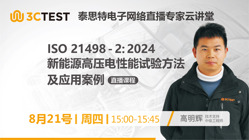 直播時間:2024年8月21日(周四)下午15:00-15:45 課程摘要:汽車廠新能源高壓電性能測試方法、試驗布置,案例應用分享。