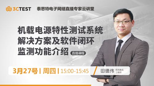 直播時(shí)間:2025年3月27日(周四)下午15:00-15:45 課程摘要:機(jī)載電源特性測試相關(guān)標(biāo)準(zhǔn)要求,測試方法及差異;測試系統(tǒng)配置要求、實(shí)施方法,注意事項(xiàng),測試結(jié)果差異分析。