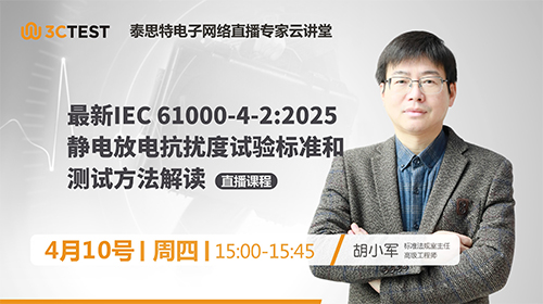 直播時(shí)間:2025年4月10日(周四)下午15:00-15:45 課程摘要:最新IEC 61000-4-2:2025靜電放電抗擾度試驗(yàn)標(biāo)準(zhǔn)和測試方法解讀