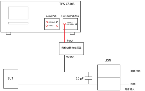 測(cè)試連接示意圖2: 0.15 μs串聯(lián)試驗(yàn)