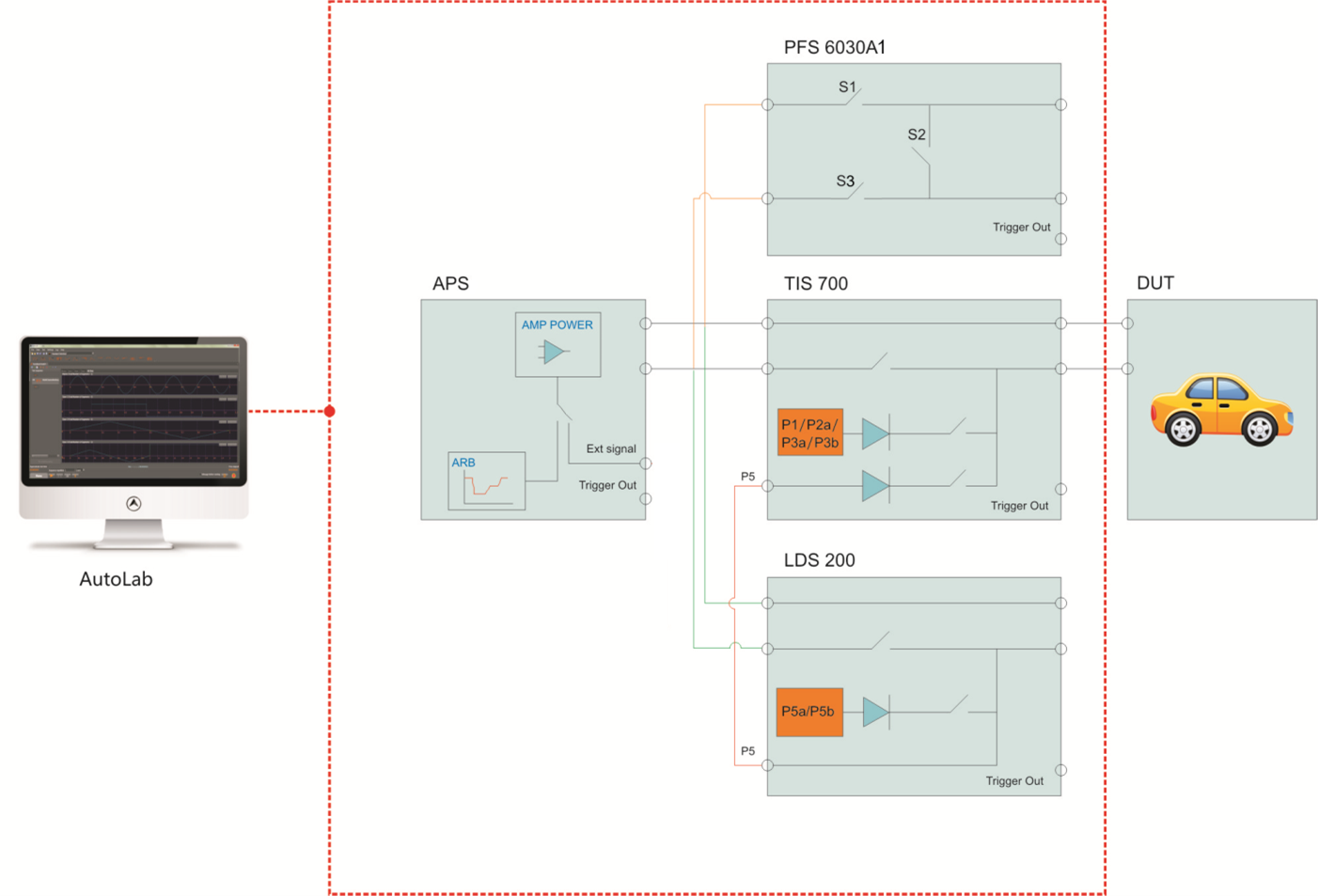 APS xxxxDSR系列滿足ISO 7637/16750傳導瞬態(tài)測試,配置了四象限雙極性放大器,模擬線束上各種電壓變化現(xiàn)象,能夠產(chǎn)生電壓跌落、短時中斷等各種電壓變化,輸出內(nèi)阻可以調節(jié)。內(nèi)置信號源,用戶可通過PC軟件編輯輸出任意波。也可作為電池供電模擬和直流電壓源使用。在實驗室測試時,APS xxxxDSR替換車輛蓄電池,產(chǎn)生Pulse 2b、Pulse 4、正弦波噪聲和其它復雜電壓變化波形。同時APS xxxxDSR系列符合眾多國際/國家標準和汽車廠家標準要求。作為強大的直流電源,支持12V、24 V、42 V和48 V系統(tǒng)汽車測試。