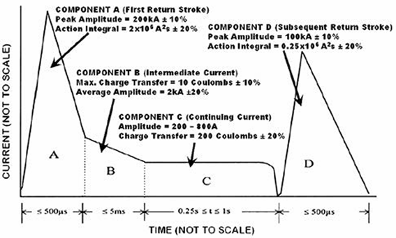 電流峰值200 kA ± 10%,作用積分2×106A2S ± 20%(500 μs內(nèi)),上升(峰值前10% - 90%)時(shí)間不大于50μs,電流衰減到波峰的1%時(shí)間不超過(guò)500 μs。此階段電流可以是單向或者震蕩的。