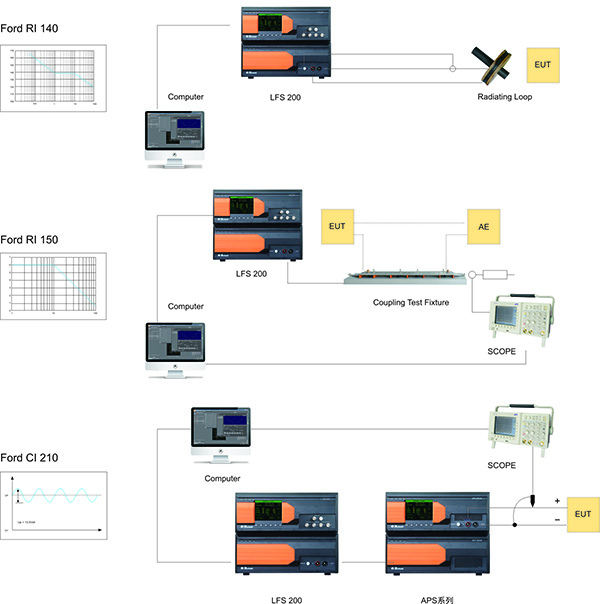 此外,配合輻射環(huán)或小型亥姆霍茲線圈,LFS 200還可以用于產(chǎn)生磁場(chǎng),能夠滿足Ford EMC-CS-2009.1標(biāo)準(zhǔn)RI 410要求。